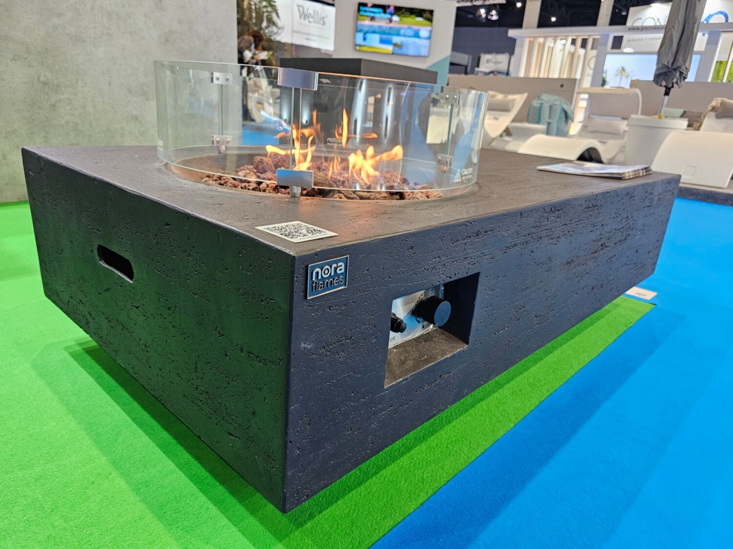 The NORA Flames Protective Glass Surround is a tempered glass windshield designed for the Fuji and Yasur gas fire tables. It shields the flame from wind while enhancing the visual impact of the fire feature.