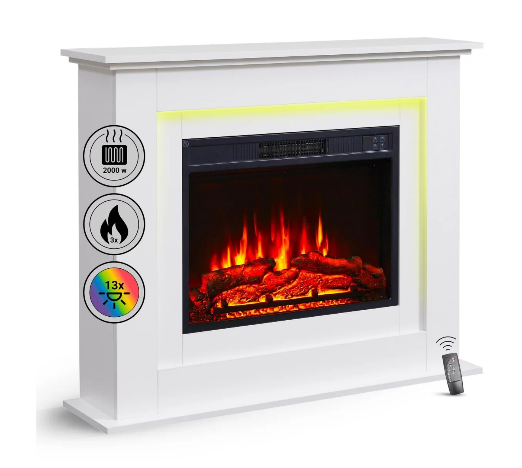 The fireplace is safe (overheating protection, open-window detection), emission-free, and conveniently controlled via remote . Ideal for any setting.